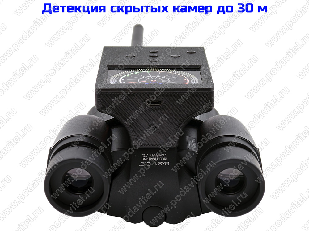 - 2 устройства в 1. Антижучок служит как для комплексного обнаружения радиопередающих устройств, так и камер видеонаблюдения различных типов.