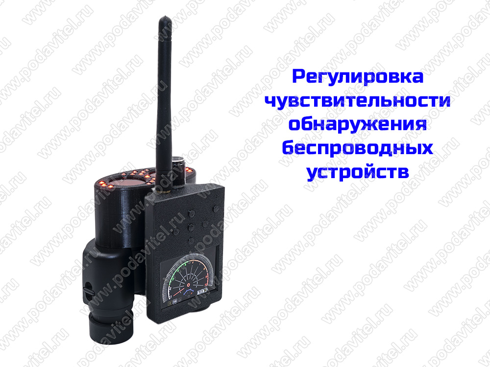 - Регулировка чувствительности обнаружения беспроводных устройств позволяет сократить количество ложных срабатываний и настроить прибор под окружающий электромагнитный фон.