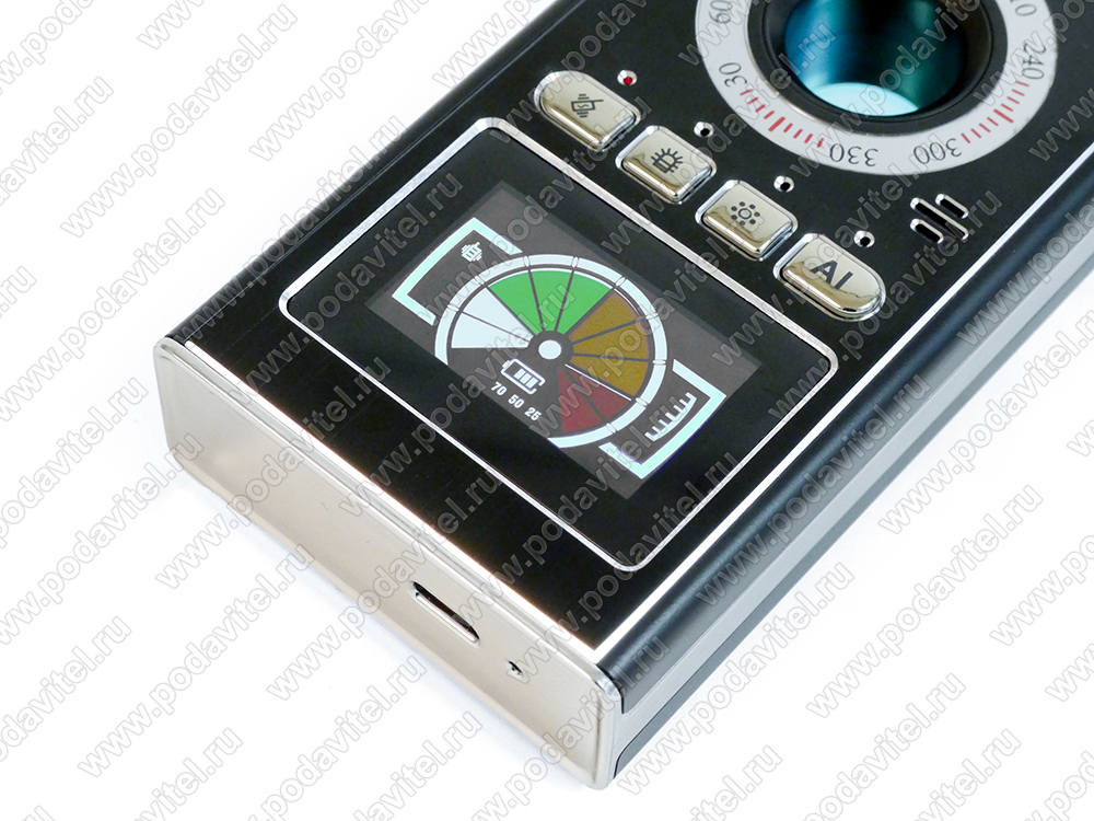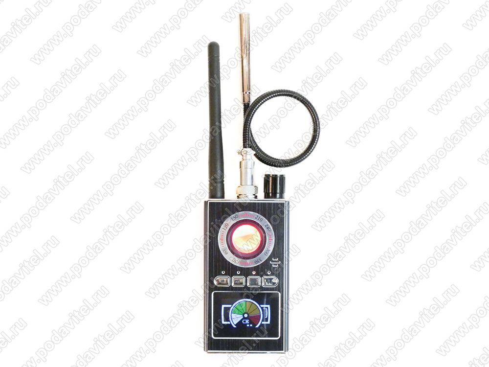 Оптический обнаружитель камер применяется для поиска как проводных, так и беспроводных видеокамер независимо от их габаритов. Обнаружитель передает световое излучение, которое отражается от линз объективов камер, что позволит обнаружить даже выключенную камеру. Встроенный аккумулятор позволяет антижучку работать автономно длительное время – до 8 часов.