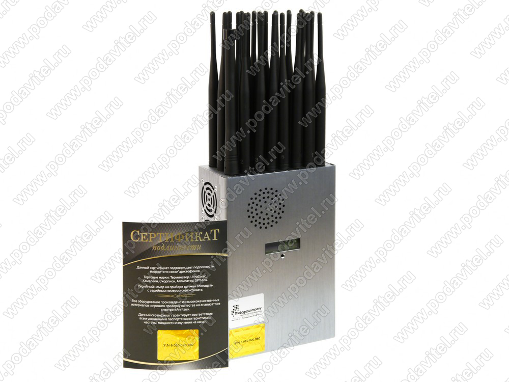 Сверхмощный мобильный мультичастотный подавитель Терминатор 50-5G (24х24) предназначен для подавления беспроводного сигнала портативных устройств, всех типов телефонов Android, планшетов, смартфонов, iPhone, и так далее, которые используют 2G, 3G, 4G, 5G и CDMA 450 МГц, а так же он блокирует GPS (прибор не подавляет и не влияет на работу системы "Платон"), Wi-Fi 5G, Walkie-Talkie - UHF/VHF и радиочастотные сигналы, такие как: 315, 433, 868, 915, LORA, LOJACK и т. д.