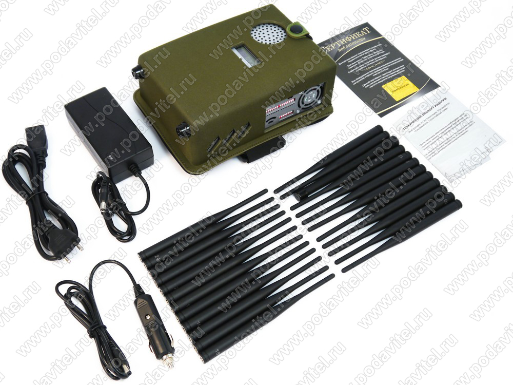 Автономная работа. Подавитель оснащен встроенным аккумулятором, что позволяет использовать его автономно до 1,5 часов. Зарядить подавитель можно как от сети 220В, так и от автомобильного прикуривателя.
