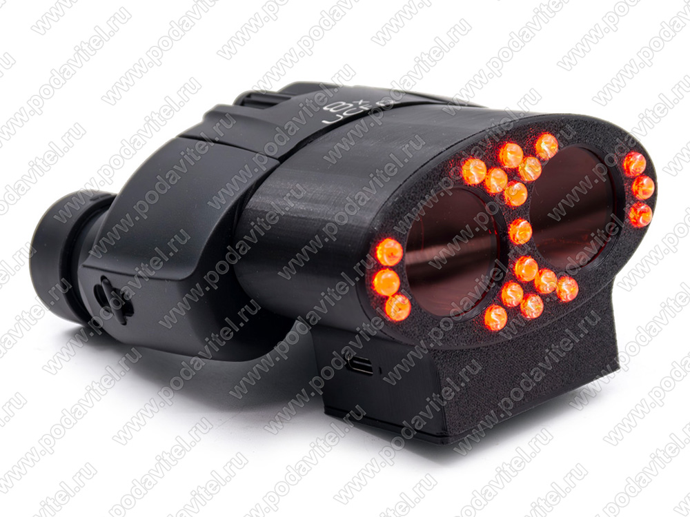 Профессиональный прибор для поиска и обнаружения скрытых видеокамер «iGlaz-Hunter» предназначен для поиска скрытых и замаскированных фото- и видеокамер. Устройство работает по методу «обратного блика» от объектива скрытой камеры. 19 встроенных лазероподобных светодиодов направляют мощный световой поток в объектив камеры, а отражение света от него без труда фиксируется в видоискателе и показывает местоположение камеры. Подобный метод поиска позволяет обнаружить любые, даже самые миниатюрные камеры: цифровые, аналоговые, проводные, беспроводные, как во включенном, так и выключенном состоянии. Высокая мощность встроенных светодиодов и линзы с 8-кратным приближением позволяют обнаружить объективы камер на значительном расстоянии – до 30 метров. Японская оптика обеспечивает максимально отчетливое изображение, а регулировка фокуса и диоптрийная подстройка позволяют точно настроить прибор под зрение пользователя. Встроенный аккумулятор обеспечивает до 4 часов автономной работы устройства, а компактные размеры позволяют всегда иметь обнаружитель скрытых камер при себе.